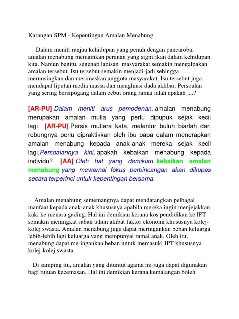 Kepentingan Amalan Menabung Spm : Contoh Karangan Syarahan Menabung Pdf. Kebaikan amalan menabung dalam kalangan masyarakat. 1 galakan daripada kerajaan dengan memberikan penerangan tentang kepentingan amalan ini. Pada era yang modenisasi ini, amalan menabung masih kurang mendapat sambutan hangat daripada . Kepentingan amalan menabung kepada keluarga.