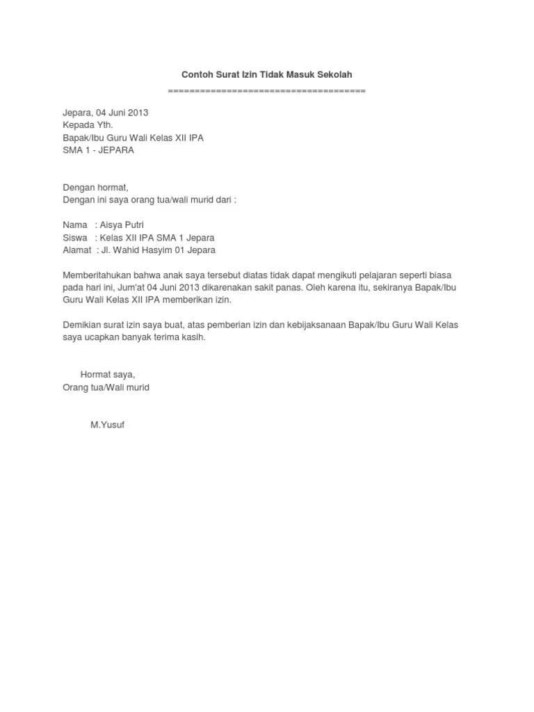 Dikutip dari buku cendekia berbahasa bahasa dan sastra indonesia untuk kelas x sma/ma oleh erwin juhara dkk. Tentu saja, kejadian ini menggemparkan sekolah dan lingkungan sekitar. Contoh surat permohonan pindah sekolah smp; 21 contoh surat izin sakit orang tua acara keramaian usaha contoh surat izin mengikuti kegiatan di sekolah document guru id. Aug 30, 2022 · untuk itulah kamu perlu mengetahui bagaimana cara membuat surat izin tidak masuk sekolah untuk memberi tahu alasan mengapa kamu tidak dapat hadir.
